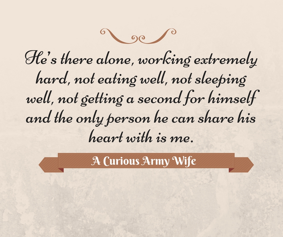 ” I have to be his strength. He’s there alone, working extremely hard, not eating well, not sleeping well, not getting a second for himself and the only person he can share his heart with is me.”